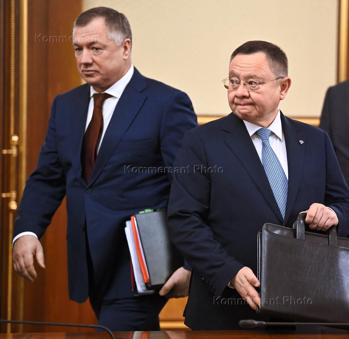 Заседание правительства России. Министр финансов России Антон Силуанов (справа) и заместитель…
