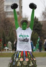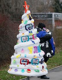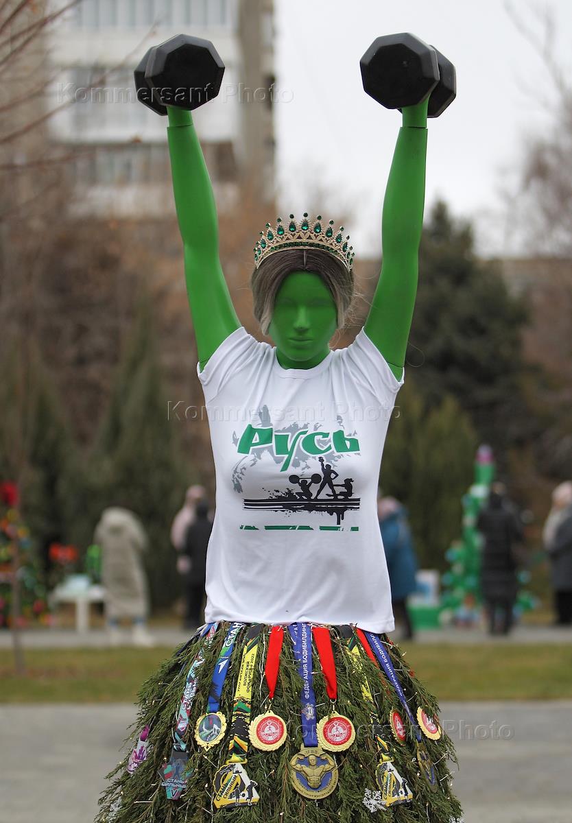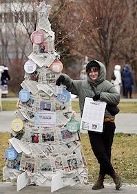 Жанровая фотография. Парад елок и забег Деда Мороза. Елка из страниц газеты.