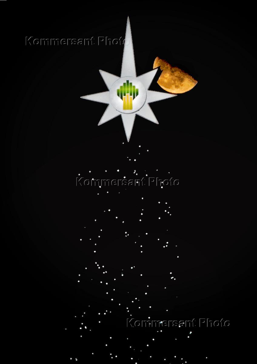 Жанровая фотография. Подготовка к празднованию Нового года в городе. Новогодняя елка с логотипом…