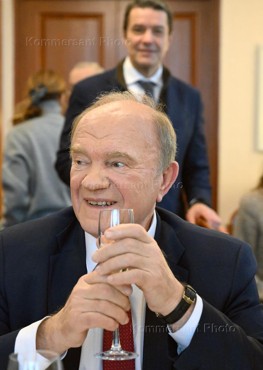 Лидер КПРФ, руководитель фракции КПРФ в Государственной думе (ГД) России Геннадий Зюганов (в центре)…