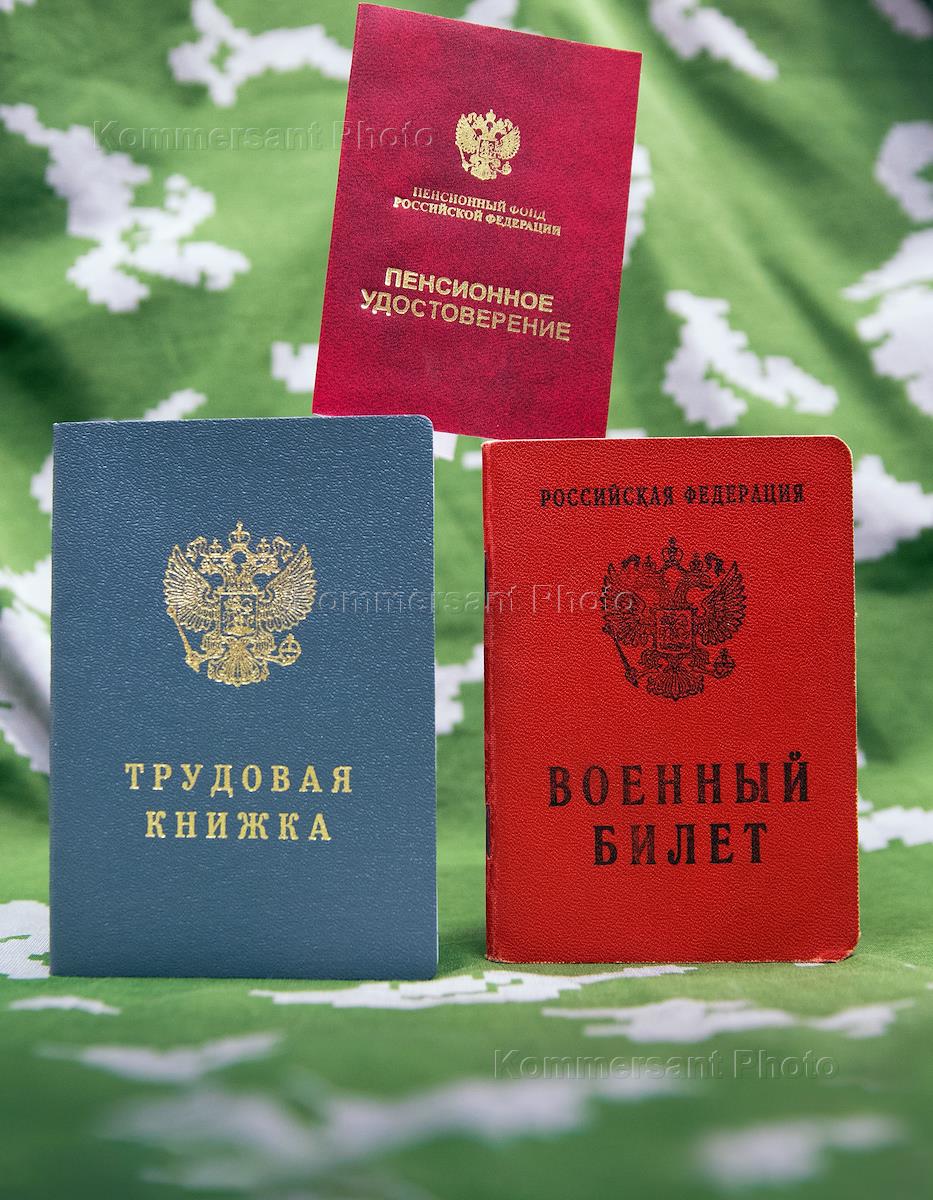 Жанровая фотография. Трудовая книжка, пенсионное удостоверение и военный билет.