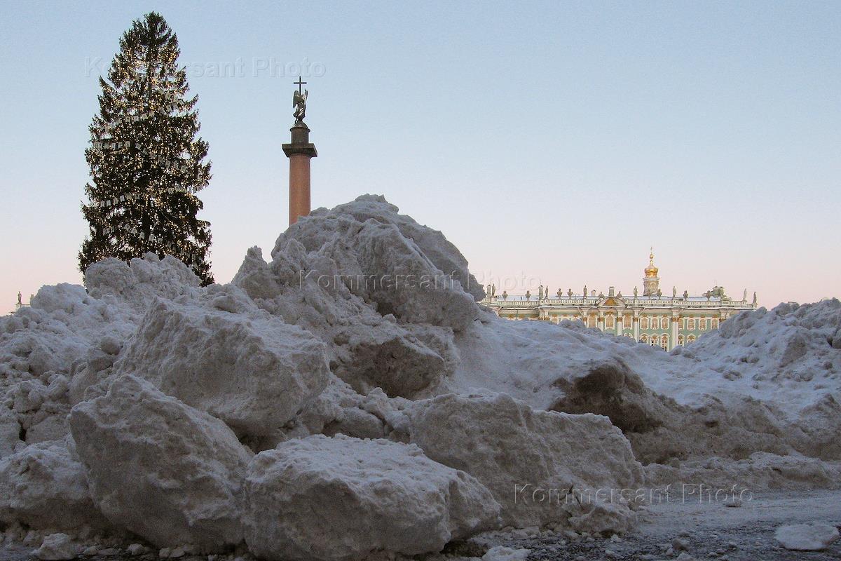 Виды Санкт-Петербурга. Новогодняя елку у Александровской колонны на Дворцовой площади.