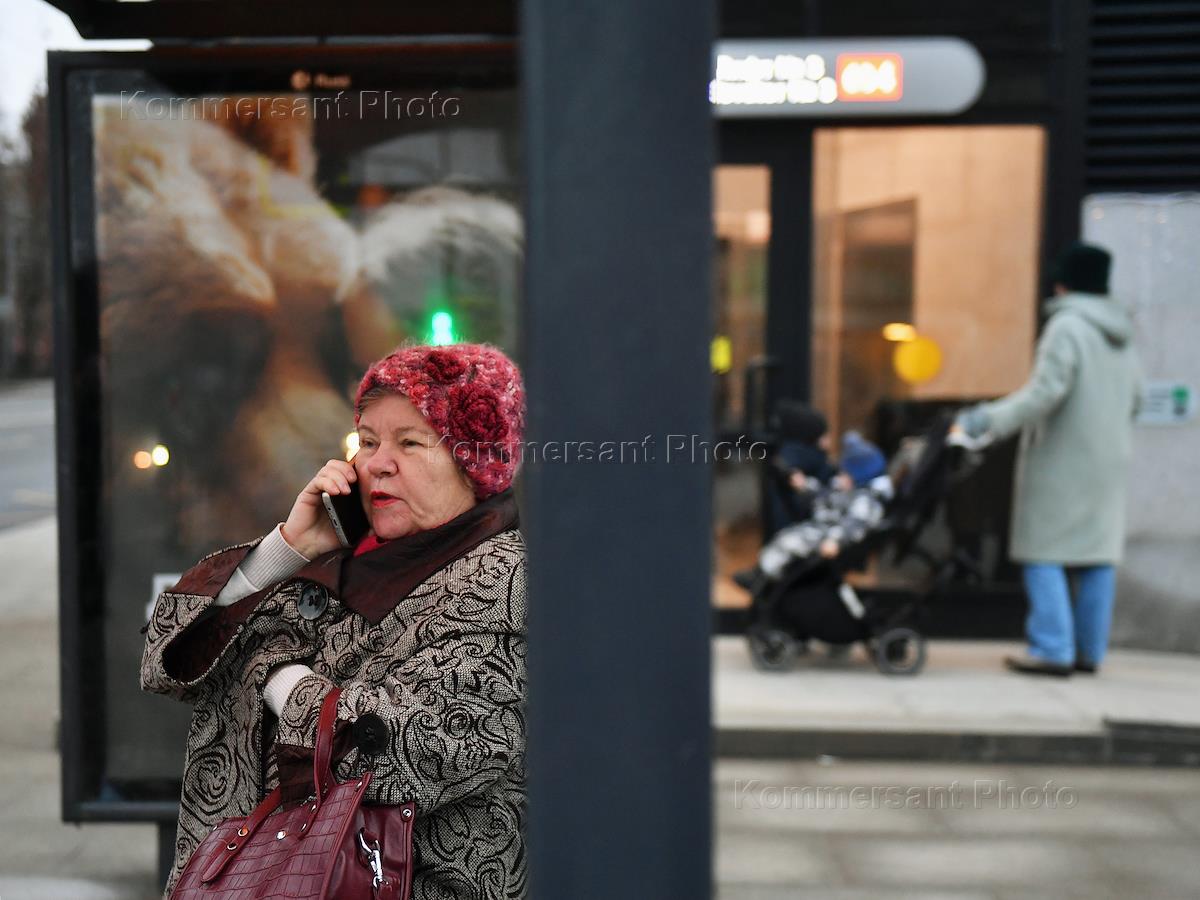 Жанровая фотография. Женщина разговаривает по мобильному телефону на улице.