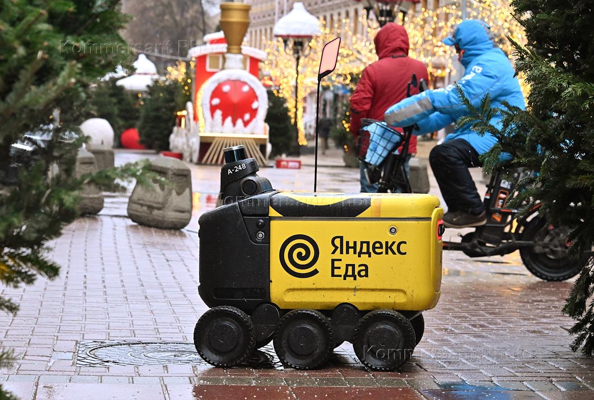 Жанровая фотография. Робот-доставщик "Яндекс Еда" на улице города.