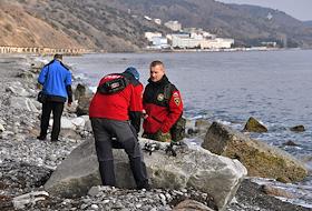 Сотрудники МЧС проверяют побережье после выброса нефтепродуктов из потерпевших бедствие двух танкеров "Волгонефть" в Керченском проливе.
