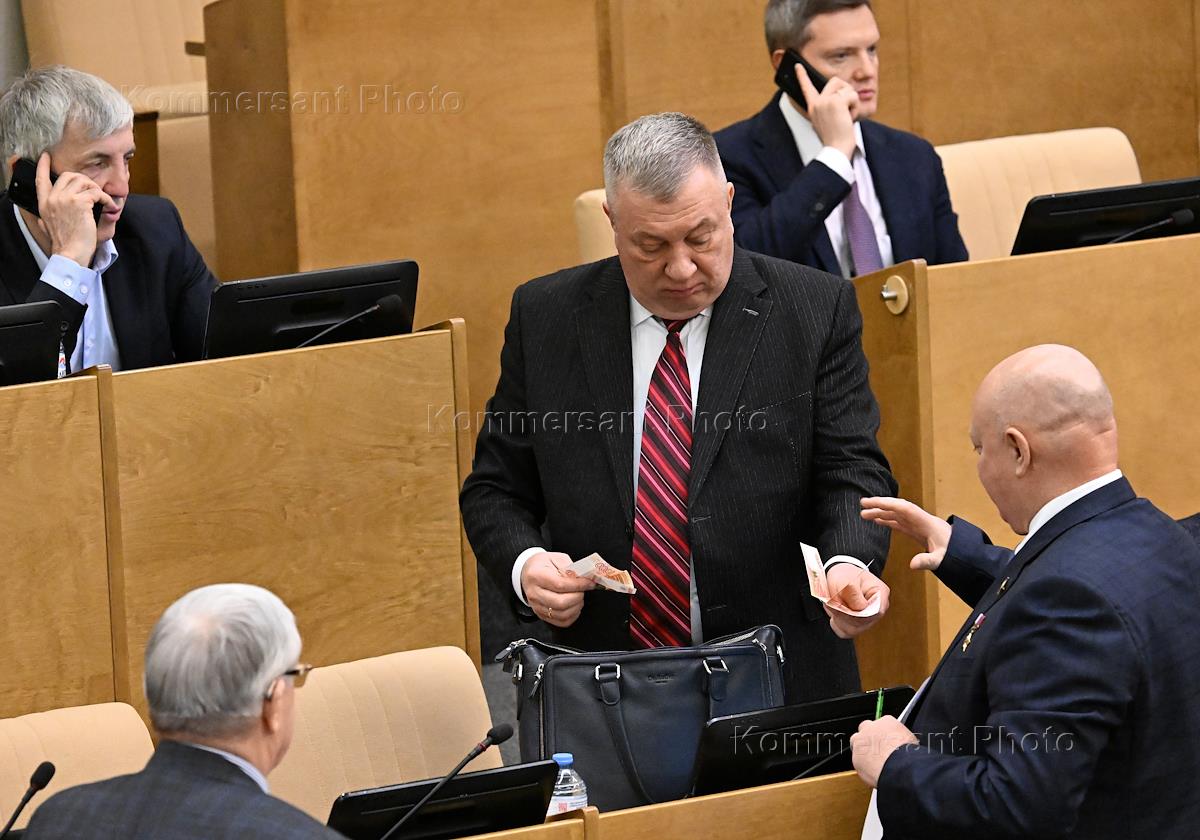 Первое пленарное заседание весенней сессии Государственной думы (ГД) России. Депутат во время…