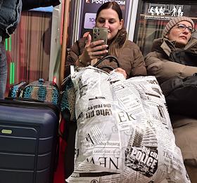 Виды Московского метрополитена. Жанровая фотография. Пассажиры в вагоне поезда метро.
