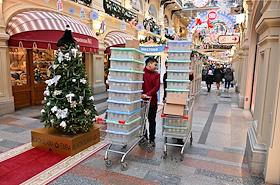 Главный универсальный магазин (ГУМ) в преддверии Нового года. Жанровая фотография. Новогодние елки в…