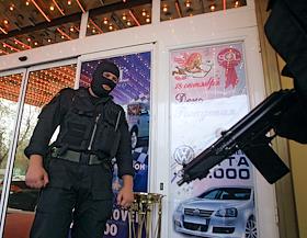 Сотрудник ОМОН во время проверки казино "Sol" (Сол) в Николо-Ямском переулке.