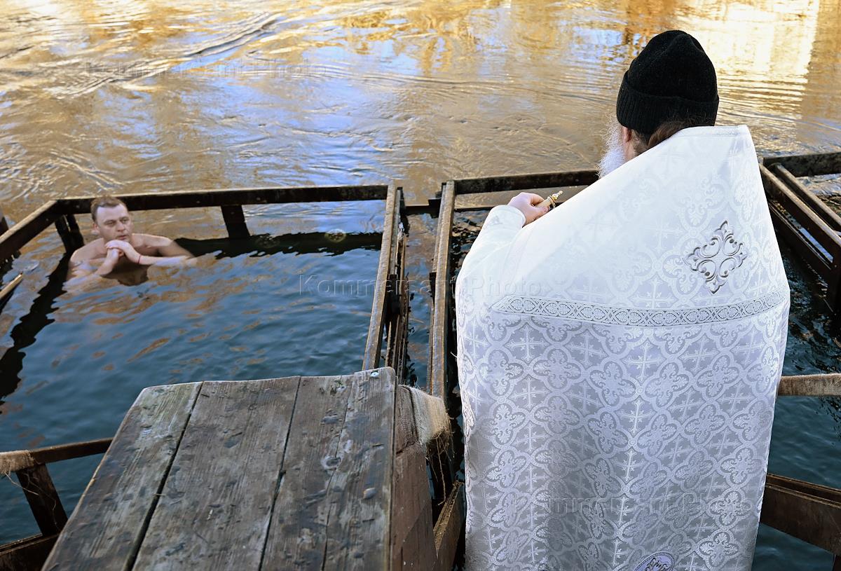Праздник Крещения Господня (Богоявления). Верующие во время крещенских купаний в купели на реке…