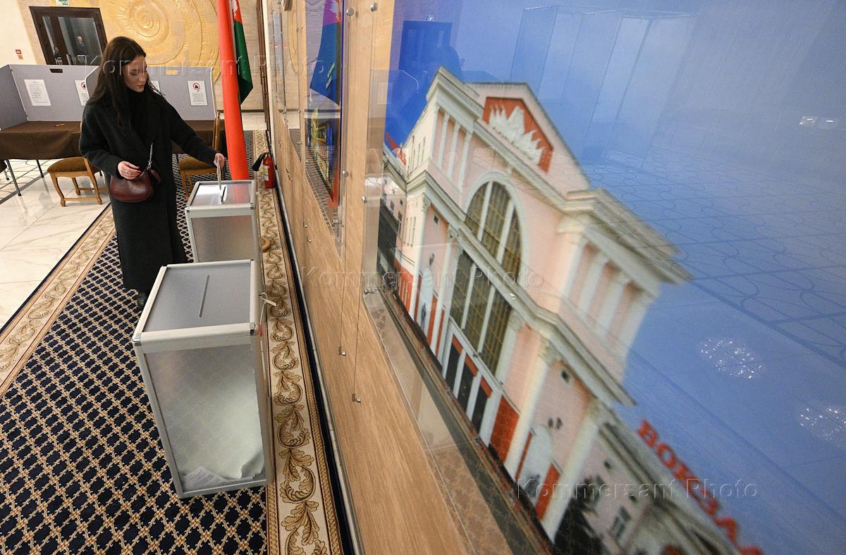 Выборы президента Белоруссии. Избиратели во время голосования на избирательном участке.…