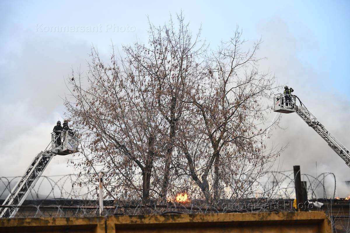 Ликвидация пожара в хостеле на улице Сходненский тупик. Сотрудники МЧС России во время тушения…