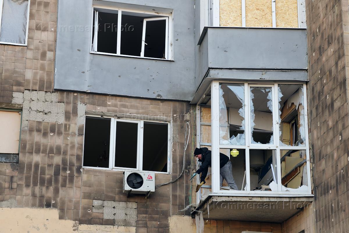 Последствия обстрела Макеевки. Разбитые окна в жилом многоэтажном доме.