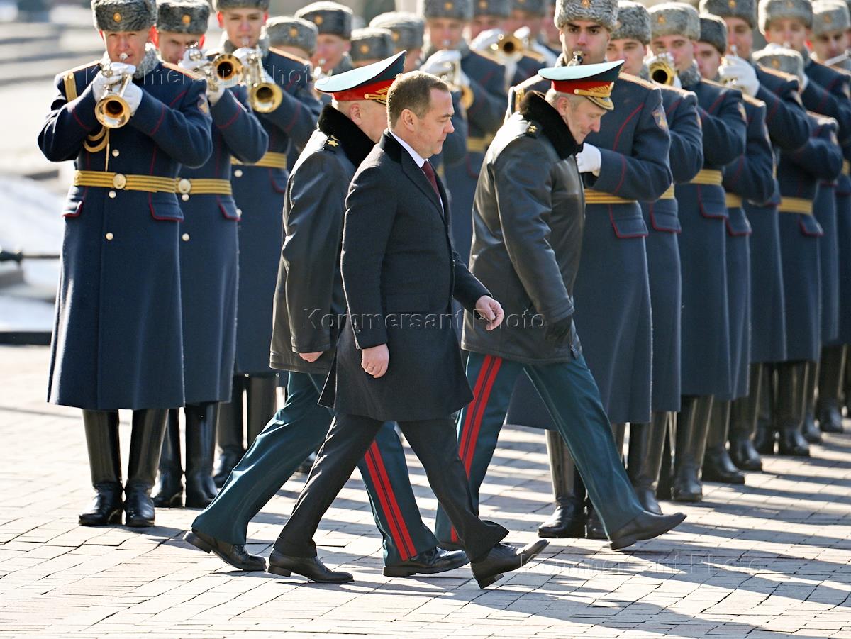 День защитника Отечества. Церемония возложения венка к Могиле Неизвестного Солдата у Кремлевской стены в Александровском саду.