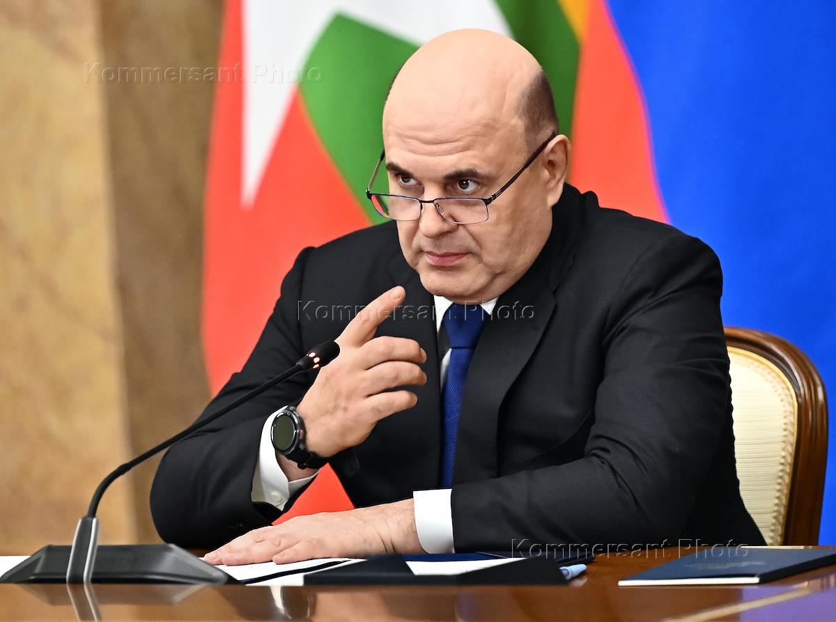 Председатель правительства России Михаил Мишустин (слева) и премьер-министр Мьянмы Мин Аун Хлайн…