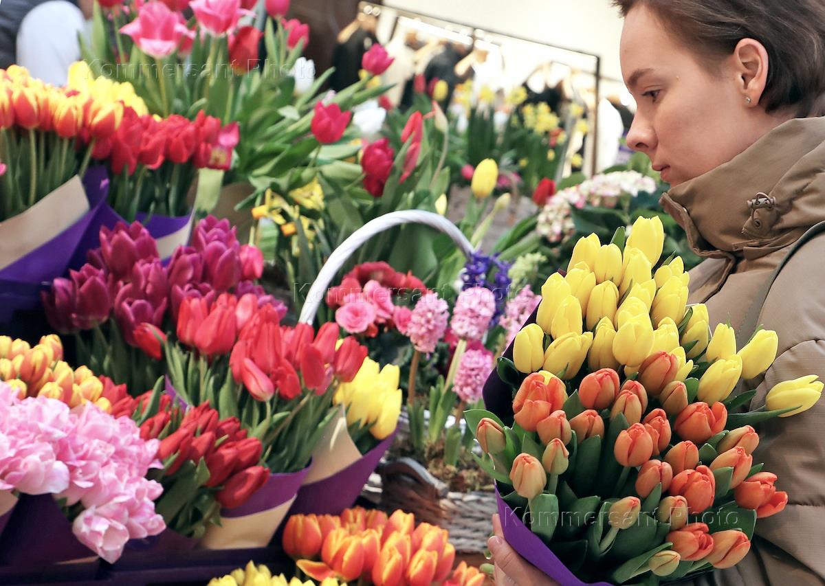 Жанровая фотография. Подготовка к женскому празднику Восьмое марта. Ярмарка цветов в Петровском…