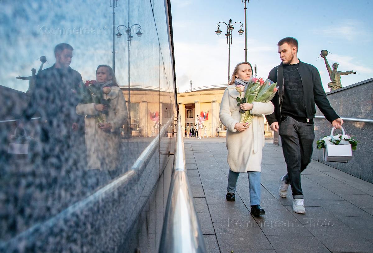 Жанровые фотографии. Продажа цветов к 8 марта на Рижском рынке.