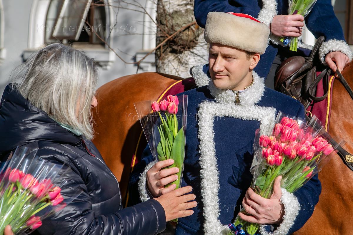 Поздравление всадниками Кремлевской школы верховой езды женщин с Международным женским днем 8 Марта…
