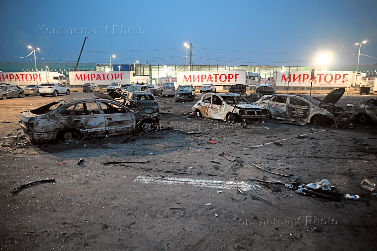 Последствия атаки беспилотного летательного аппарата (БПЛА) в Домодедово. Фрагменты автомобилей,…