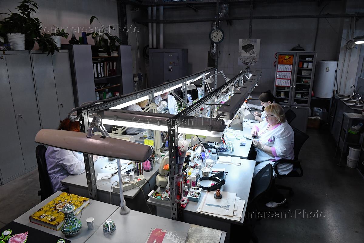 Пресс-тур на завод Императорского ювелирного дома "Русские самоцветы". Участок холодной эмали.…