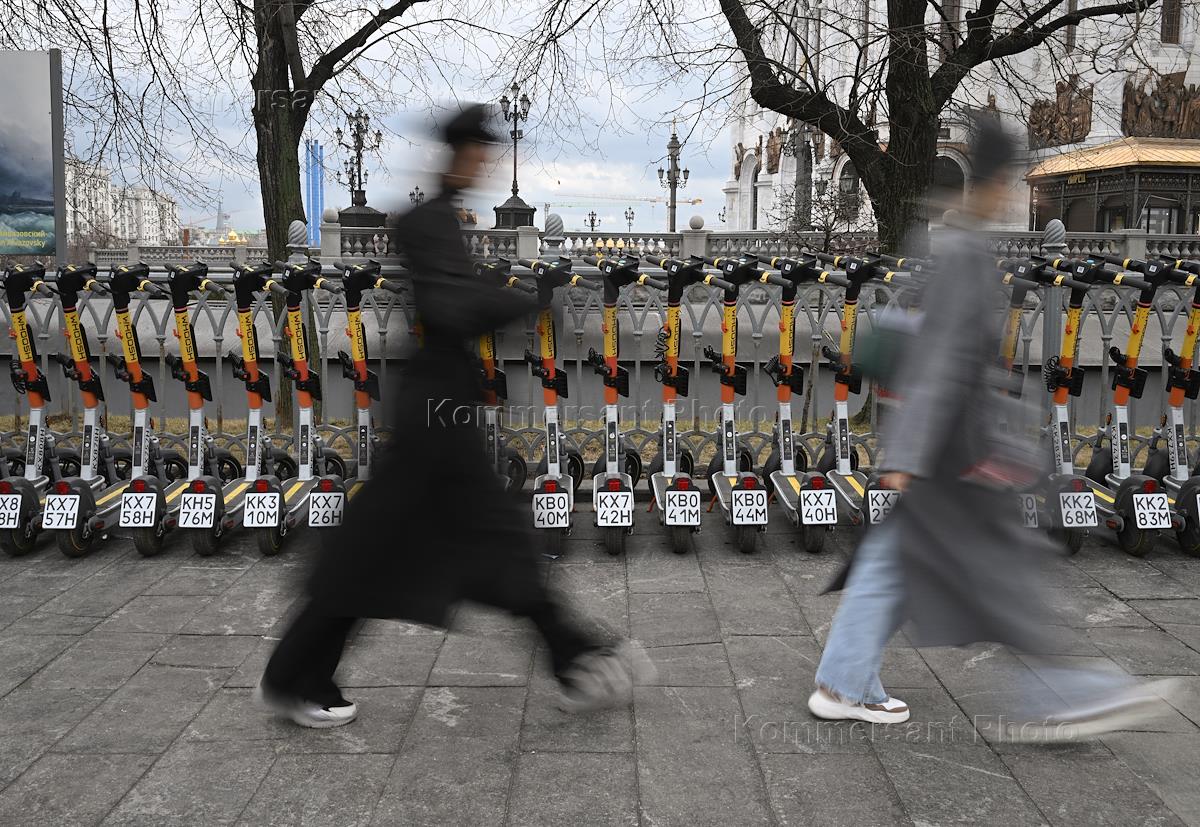 Начало сезона аренды самокатов в Москве. Электросамокаты компании "Юрент" (Urent) в парке "Музеон".…
