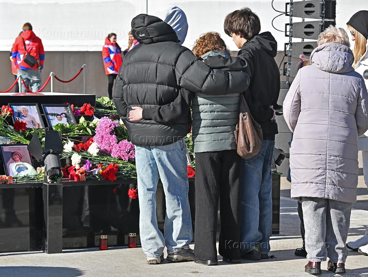 Общество Церемония открытия мемориала в память о жертвах теракта в концертном зале "Крокус сити холл" в первую годовщину со дня трагедии у здания концертного зала.