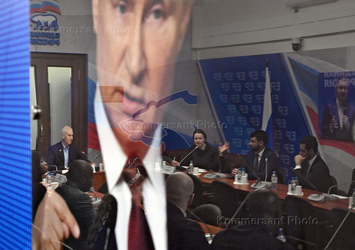 Политика Рабочая встреча председателя комитета Государственной думы (ГД) России по физической культуре и спорту с представителями Московского дипломатического клуба и членами Совета молодых дипломатов МИД России в ГД России.