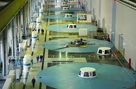 Работа Богучанской гидроэлектростанции (ГЭС). Жанровая фотография. Машинный зал.