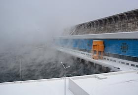 Богучанская гидроэлектростанция (ГЭС) на реке Ангара. Жанровая фотография.