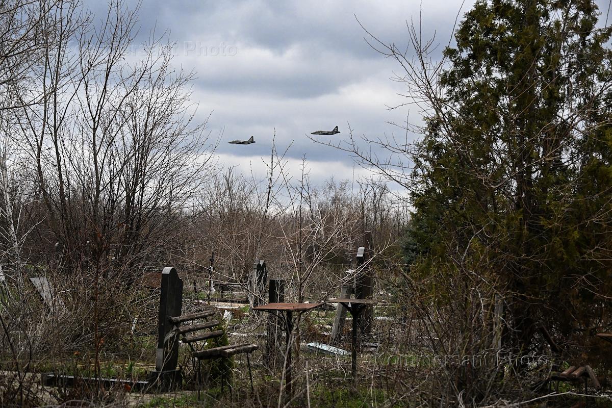 Ситуация в Донецкой Народной Республике (ДНР). Пролетающие над кладбищем самолеты.