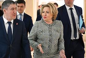 Заседание Совета Федерации (СФ) России. Председатель СФ России Валентина Матвиенко (справа) и…