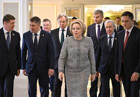 Заседание Совета Федерации (СФ) России. Председатель СФ России Валентина Матвиенко (вторая справа)…