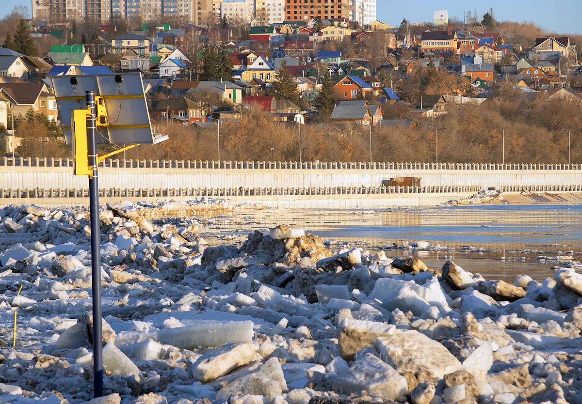 Жанровая фотография. Виды Уфы. Река Белая во время ледохода. Затор из льдин на реке и сломанные…