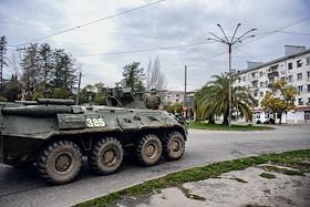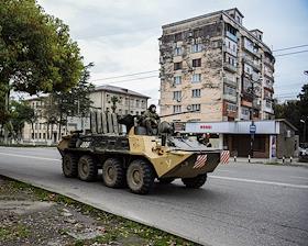 Жанровая фотография. Виды Абхазии. Боевая военная техника на улице города Сухум.