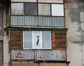 Жанровая фотография. Виды Абхазии. Труба от печки врезана в окно балконного остекления.