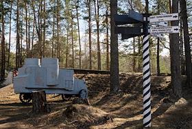 Виды форта "Красная горка" в Лебяженском городском поселении. Макет броневика на территории форта.