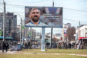 Жанровые фотографии. Рекламный щит с изображением хоккеиста Александра Овечкина.