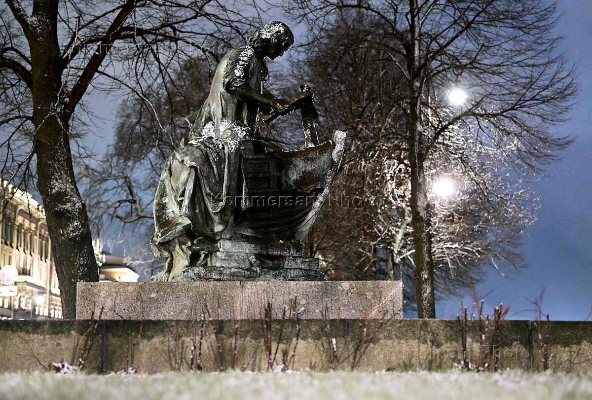 Виды Санкт-Петербурга после снегопада. Скульптура "Царь-плотник" - памятник Петру I на…