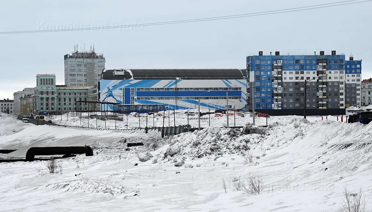 Виды Норильска. Жанровая фотография. Надпись на ангаре "Норникель".