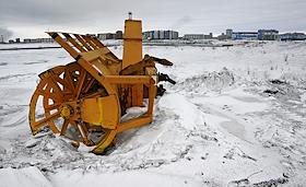 Виды Норильска. Жанровая фотография. Фрезерно-роторный снегоочиститель на поле.