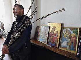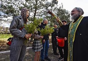 Празднование Входа Господня в Иерусалим (Вербное воскресенье) в Покровском храме в Старомихайловке (ДНР).