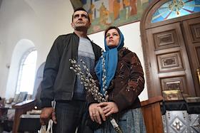 Празднование Входа Господня в Иерусалим (Вербное воскресенье) в храме Покрова Богородицы. Жанровая…