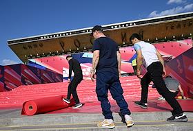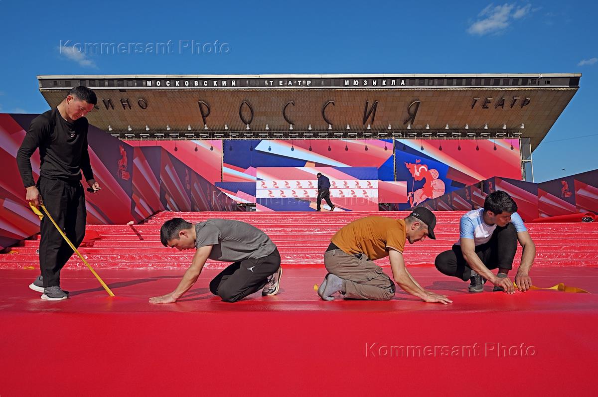 47-й Московский международный кинофестиваль. Жанровая фотография. Подготовка к церемонии открытия у…