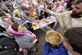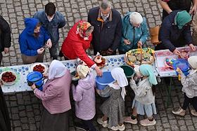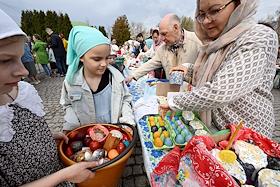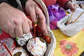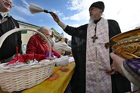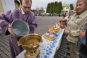 Религия Великая Суббота. Чин освящения пасхальных куличей, яиц и пасхи в канун Светлого Христова Воскресения в Храме Святых Первоверховных апостолов Петра и Павла в Ясеневе.