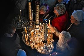 Великая Суббота. Верующие во время богослужения в канун Светлого Христова Воскресения в Храме Святых…
