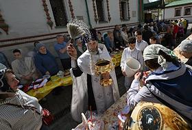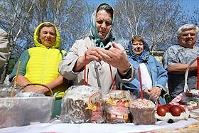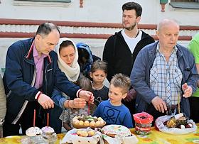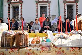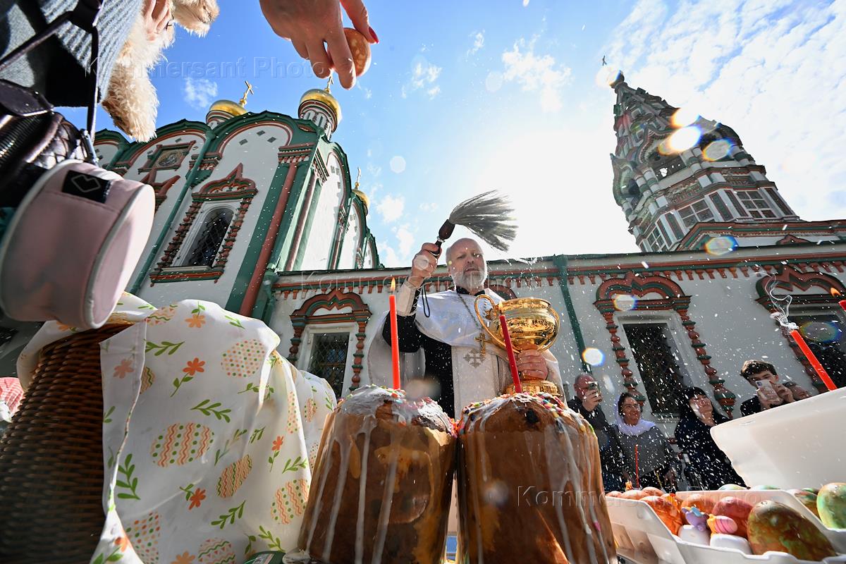 Религия Великая Суббота. Чин освящения пасхальных куличей, яиц и пасхи в канун Светлого Христова Воскресения в Храме святителя Николая Чудотворца в Хамовниках.