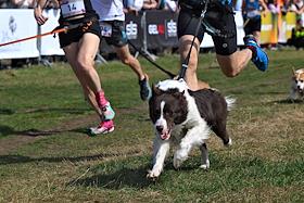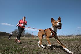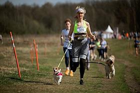 Забег с собаками – кросс "Быстрый пес" в парке "Битцевский лес". Участник во время забега.