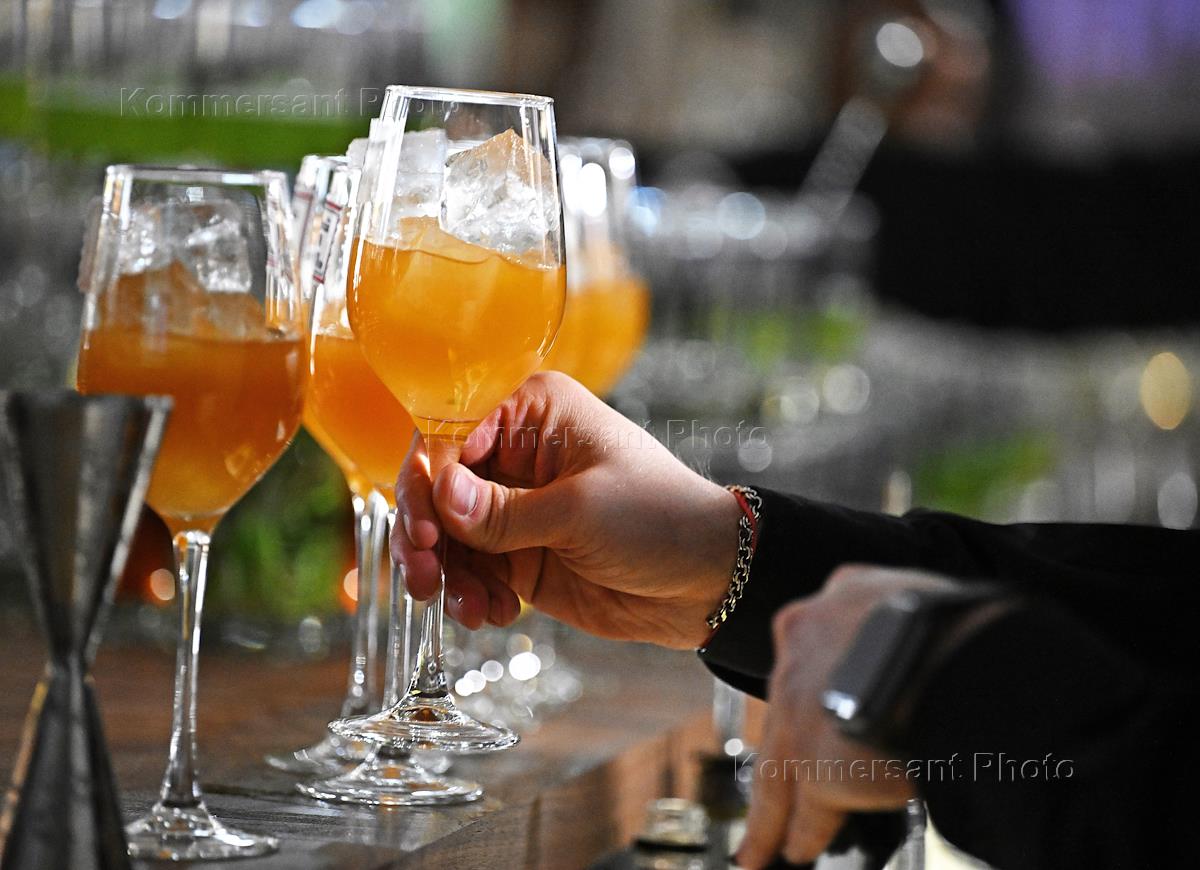 Жанровая фотография. Фуршет. Бокалы с напитками.