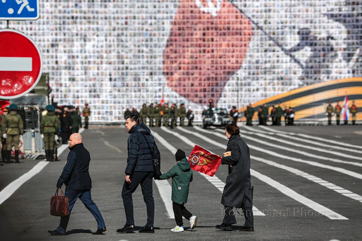Репетиция военного парада, посвященного 80-й годовщине Победы в Великой Отечественной войне, на Дворцовой площади.
