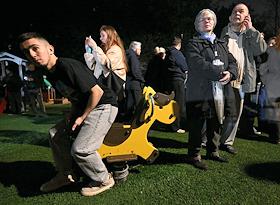 Последствия взрыва в многоэтажном жилом доме по улице Генерала Тюленева. Жители на детской площадке…